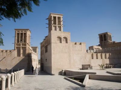 In response to extreme temperatures, the people of the UAE in the past built sustainable structures such as wind towers, known as barajeel in Arabic. These are tall towers constructed above buildings with openings at the top to catch wind to cool the rooms below – serving as a natural form of air-conditioning.