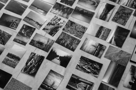 Instead, Al-Ameri spread a thousand photographs across the floor of the exhibition and in the halls that led to the space. The photographs were arranged in forms that allude to the waterways of the marshes. But there was also another reason that Al-Ameri opted to have the photographs on the floor.